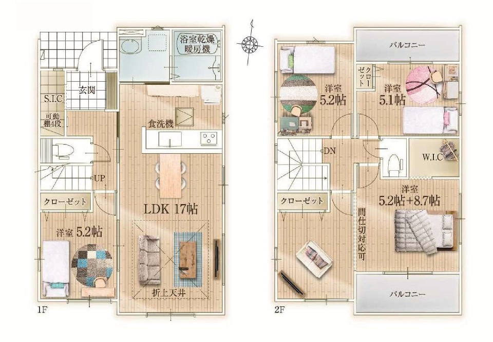 | 間取り | 4LDK LDK 17帖 x 1室、洋室 5.2帖 x 1室、洋室 8.7帖 x 1室、洋室 5.2帖 x 2室、洋室 5.1帖 x 1室 |