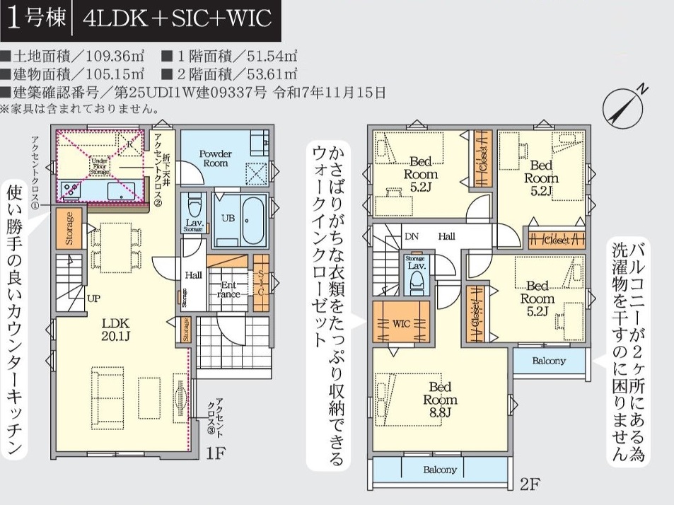 京成本線八千代台駅 徒歩6分 | 109.36m² / 105.15m² | 4LDK |