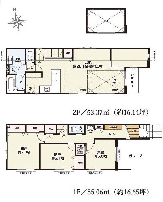| 間取り | 1LDK S 7.3帖 x 1室、S 5.1帖 x 1室、洋室 5帖 x 1室、LDK 24.1帖 x 1室 |