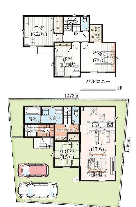 | 間取り | 4LDK LDK 17帖 x 1室、和室 4.5帖 x 1室、洋室 7帖 x 1室、洋室 6.62帖 x 1室、洋室 5.25帖 x 1室 |