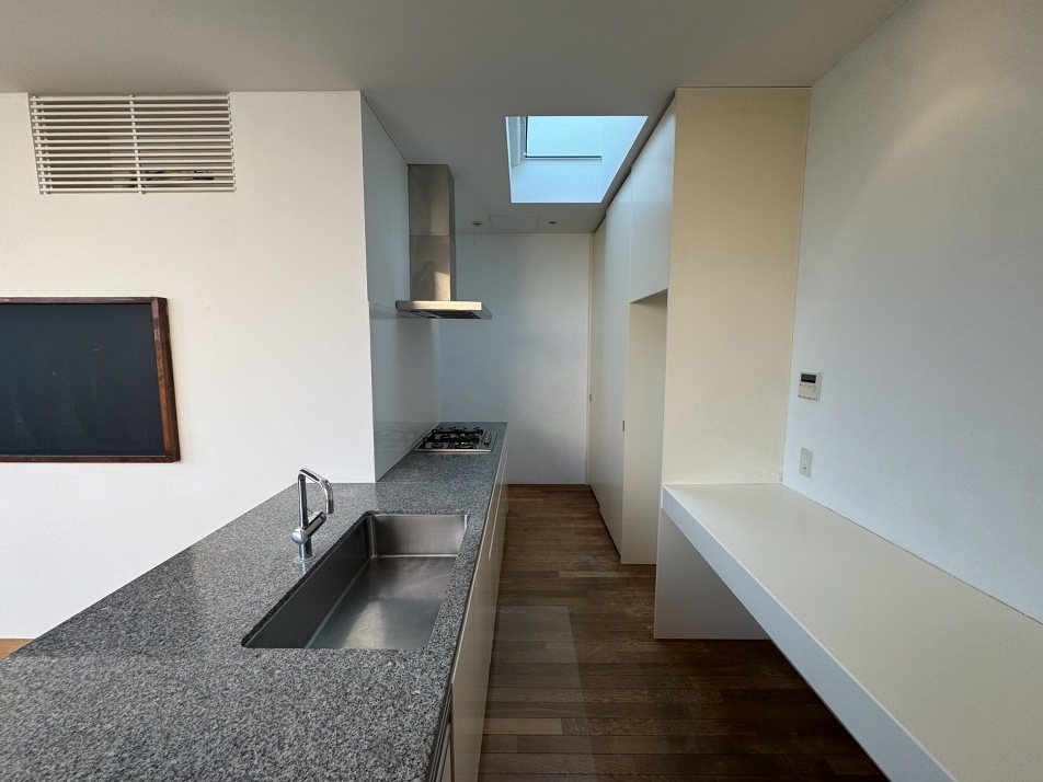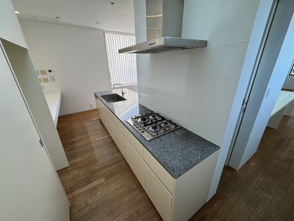 4口コンロ スタイリッシュな人口大理石ワークトップ キッチンは2wayで使いやすい動線