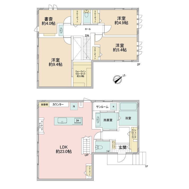 | 間取り | 3SLDK LDK 23帖 x 1室、洋室 9.4帖 x 1室、洋室 5.4帖 x 1室、洋室 4.9帖 x 1室、S 4帖 x 1室 |