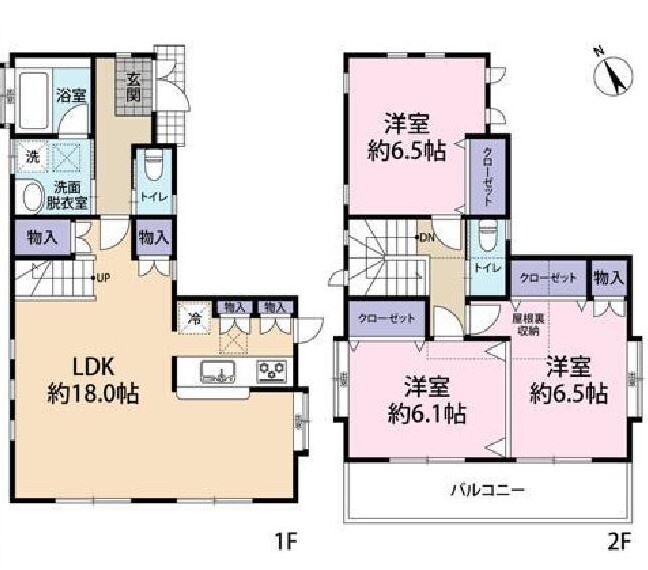 | 間取り | 3LDK LDK 18帖 x 1室、洋室 6.5帖 x 2室、洋室 6.1帖 x 1室 |