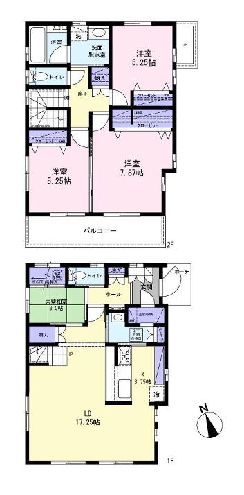 LDK 21帖 x 1室、和室 3帖 x 1室、洋室 7.87帖 x 1室、洋室 5.25帖 x 2室