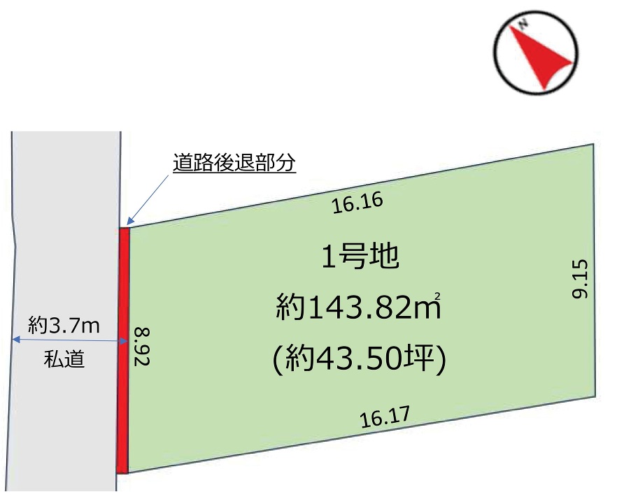 | 接道詳細 | 北西3.7m私道に8.9m接道 | ||
