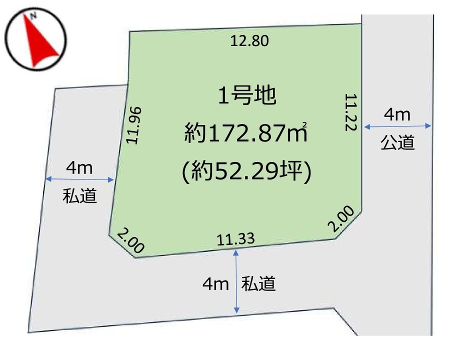 | 接道詳細 | 東4m公道 西4m私道(位置指定あり) 南4m私道(位置指定あり) | ||