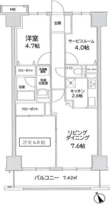 | 間取り | 2SLDK LD 7.6帖 x 1室、K 2.6帖 x 1室、洋室 6帖 x 1室、洋室 4.7帖 x 1室、S 4帖 x 1室 |