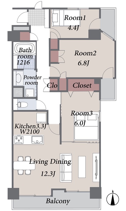 | 間取り | 3LDK LDK 15.6帖 x 1室、洋室 6.8帖 x 1室、洋室 6帖 x 1室、洋室 4.4帖 x 1室 |