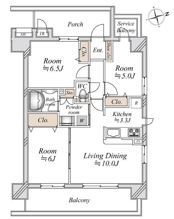 | 専有面積 | 66.25m² | バルコニー面積 | 14.28m²/東側 |