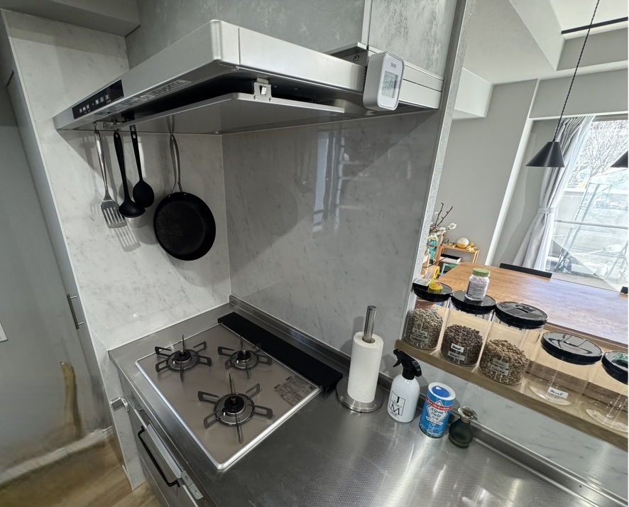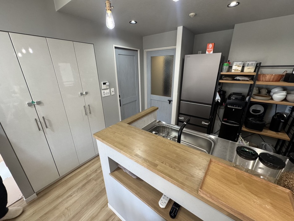 ■リビングを見渡せるカフェ風の対面キッチン
