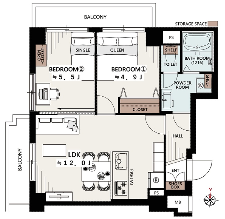 | 間取り | 2LDK LDK 12帖 x 1室、洋室 5.5帖 x 1室、洋室 4.9帖 x 1室 |