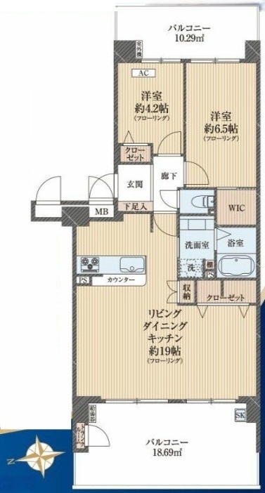 | 間取り | 2LDK LDK 19帖 x 1室、洋室 6.5帖 x 1室、洋室 4.2帖 x 1室 |