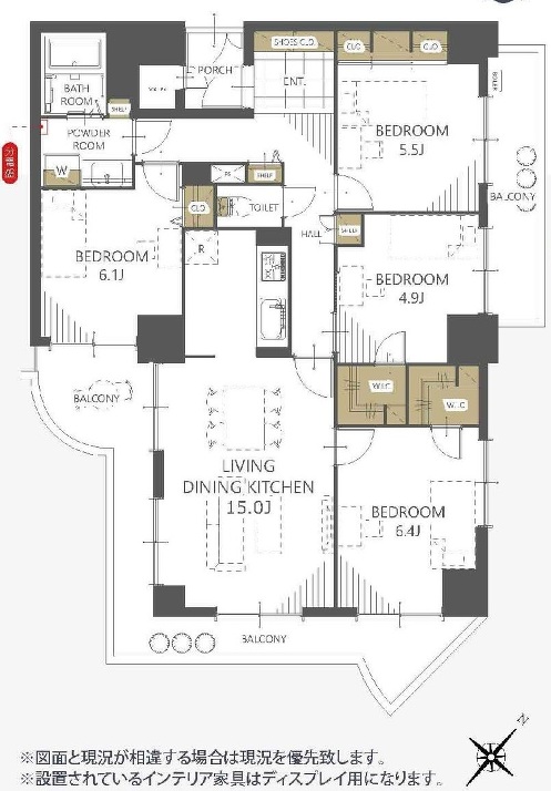 | 間取り | 4LDK LDK 15帖 x 1室、洋室 6.4帖 x 1室、洋室 6.1帖 x 1室、洋室 5.5帖 x 1室、洋室 4.9帖 x 1室 |