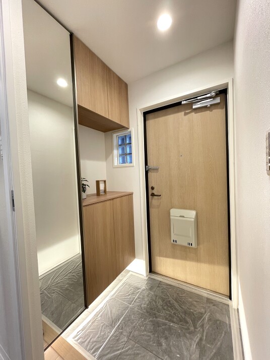 ミラー付きシューズクローゼット 玄関は人感センサー照明です