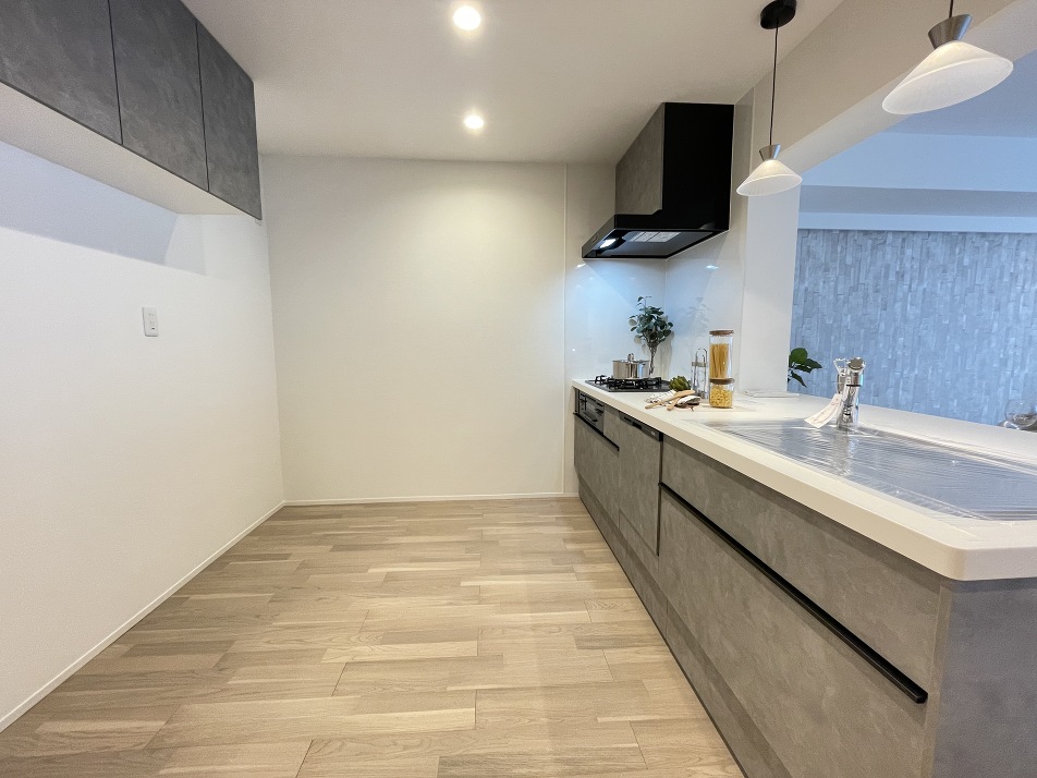 広さのあるキッチン 吊り棚設置済みです